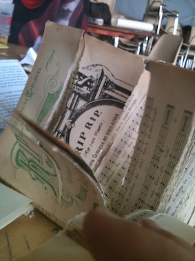 Le but de l’atelier était d’encourager le public à créer des œuvres nouvelles en utilisant les œuvres du domaine public comme matière première (dans le vrai sens du terme). De nombreux collages ont été fait, ainsi que des sculptures, des histoires sont ainsi devenus des personnages, des livres ont été transformés en bateaux pirates… le tout dans une atmosphère de chaos et de fantaisie…