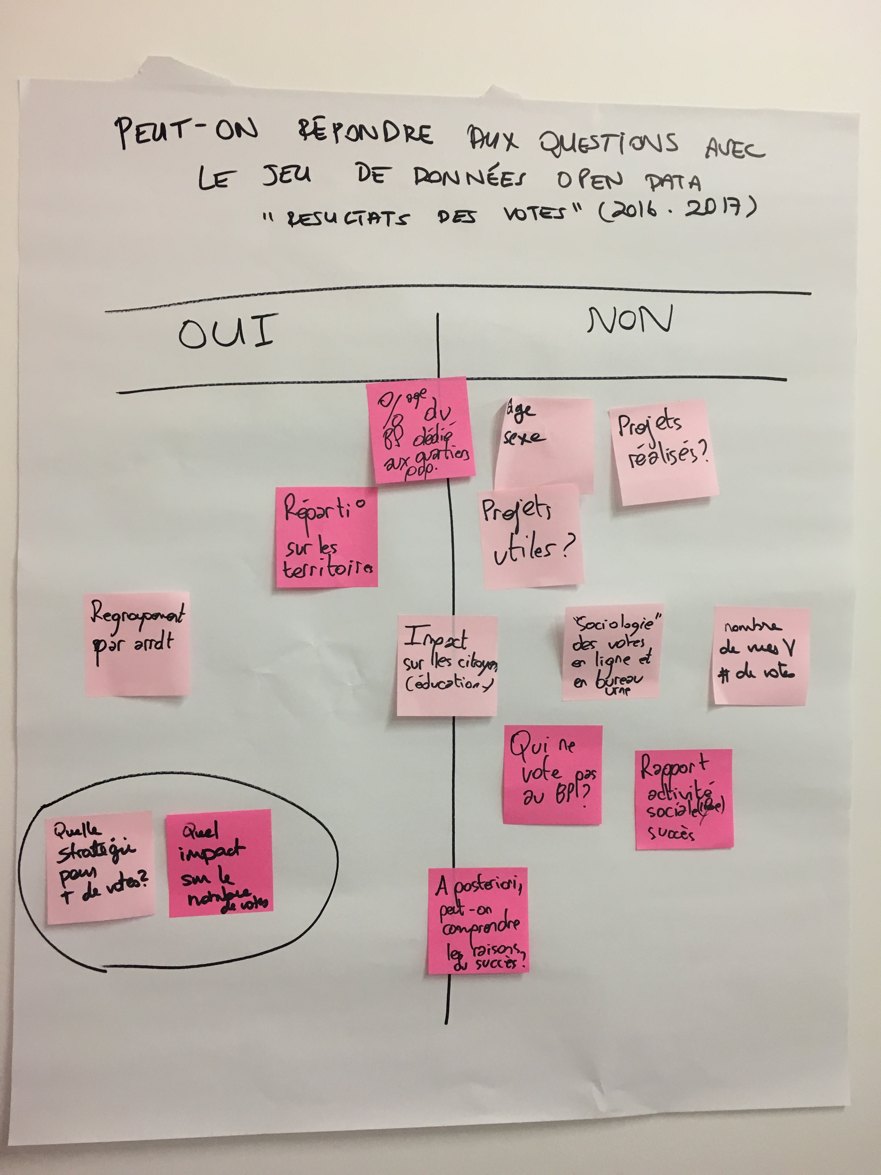Un premier constat fut celui de réaliser que certaines réponses que nous cherchions initialement au début de l’atelier, ne se trouvaient pas dans le jeu de données publié en open data.